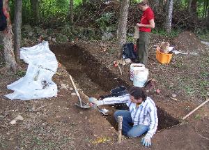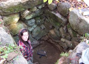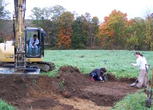 Crew chief Erin Mochrie excavating an historic stone-lined